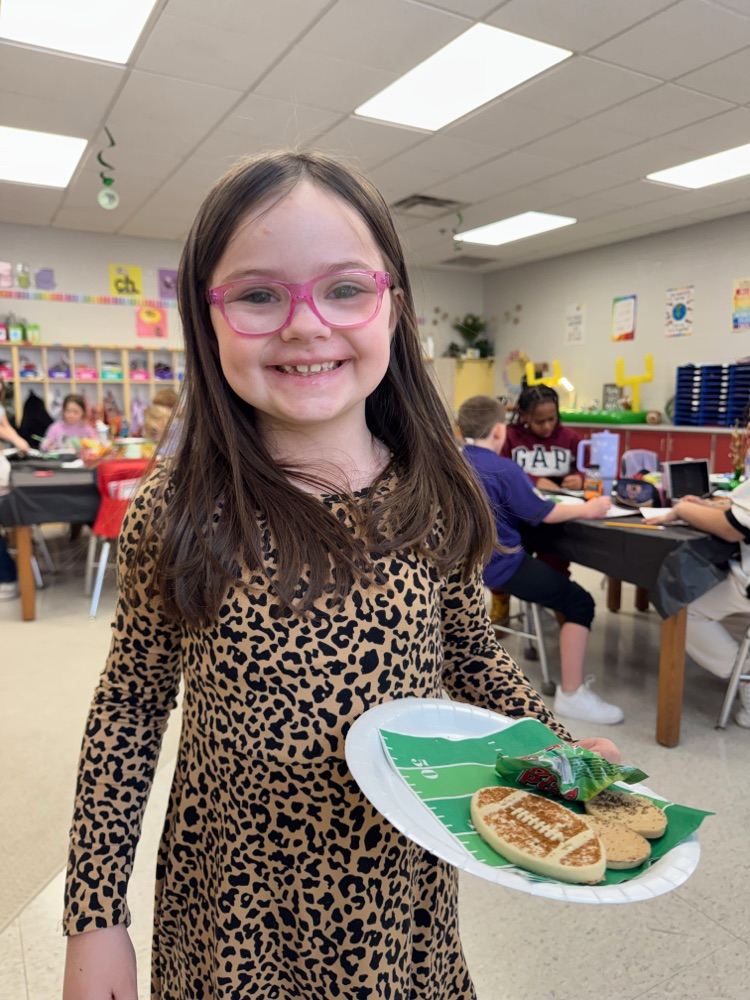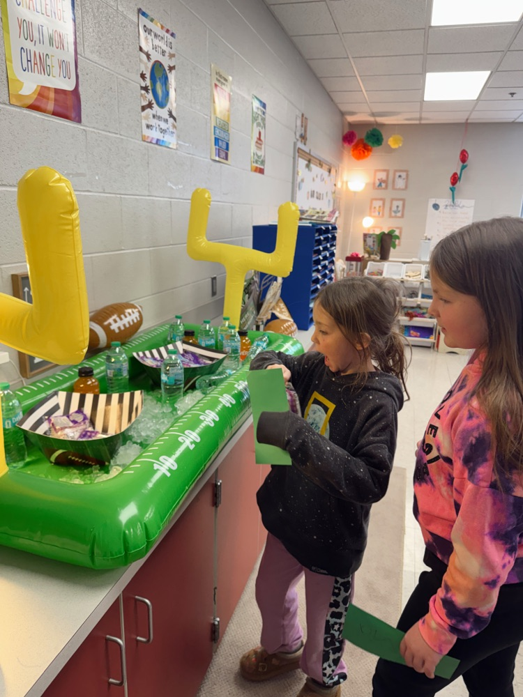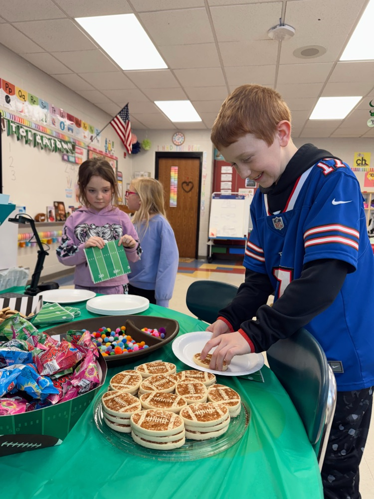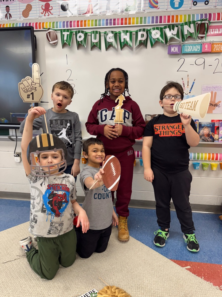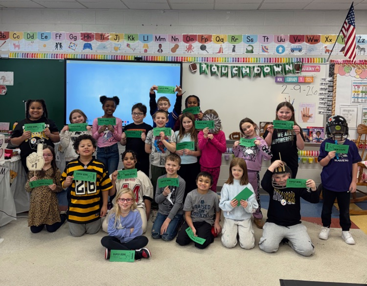 Miss Jayden's second grade class celebrated the Super Bowl. Cheering on their favorite time alongside their classmates! 🏈💙🥨