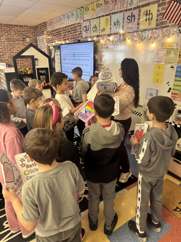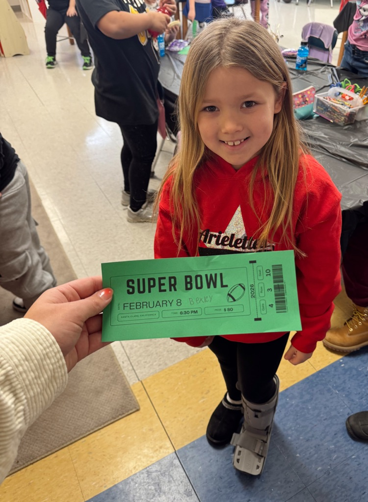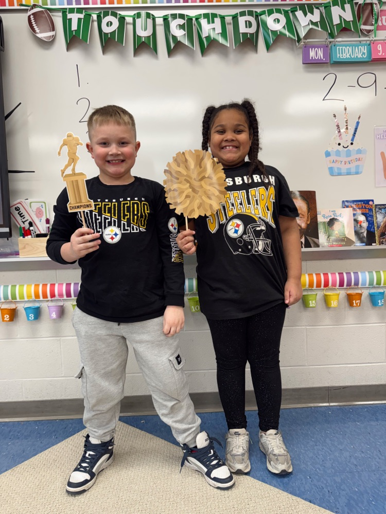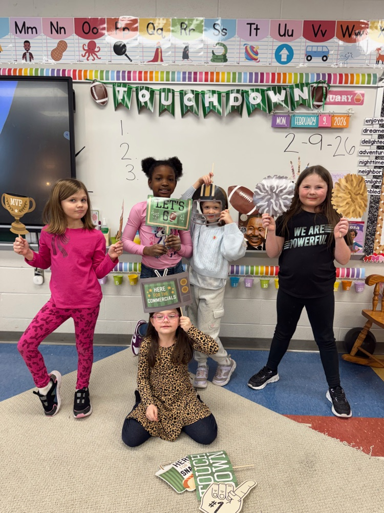 Miss Jayden's second grade class celebrated the Super Bowl. Cheering on their favorite time alongside their classmates! 🏈💙🥨